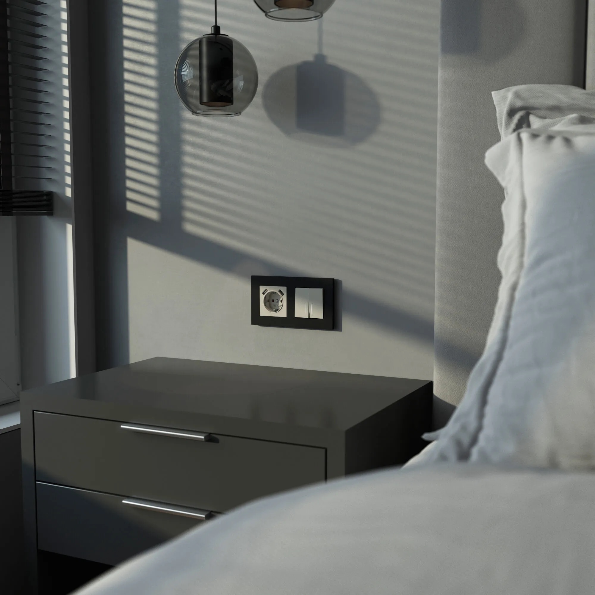 💡 Совет: Пятипостовые рамки Senso (теперь в ассортименте) позволяют компактно разместить несколько функций — идеально для зоны ТВ или рабочего уголка в гостиной.