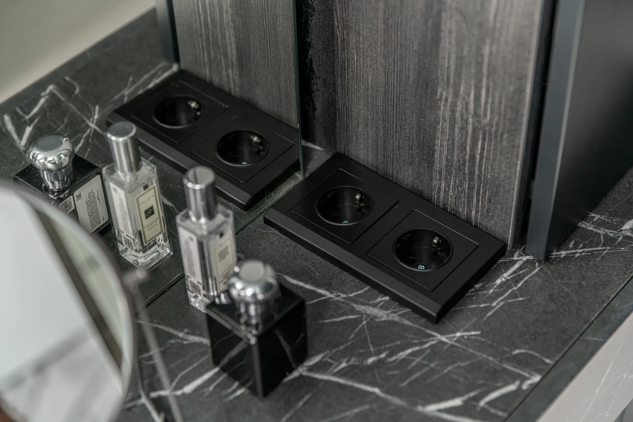 Гармоничным дополнением к обновленной спальне стали электроустановочные изделия Werkel™. Они были выполнены в темном исполнении, что идеально соответствовало общему настроению интерьера. Надежные механизмы с черными лицевыми панелями обрамлены минималистичными рамками из коллекции Stark, изготовленными из негорючего поликарбоната. Эти детали не только выполнили свою функциональную задачу, но и стали стильным акцентом в интерьере .