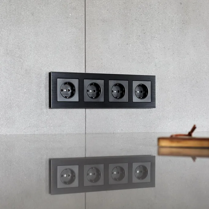 • Эстетика: черные матовые механизмы и рамки с зеркальной фаской создают гармоничный тандем, который дополняет минималистичный дизайн помещения .